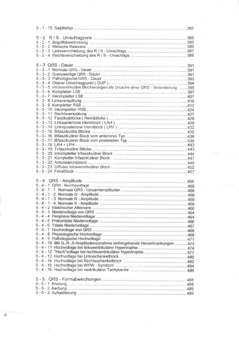 Im Buchabschnitt II werden in alphabetischer Reihenfolge siebzehn klinische EKG-Syndrome abgehandelt, vom akuten Koronarsyndrom bis hin zur Vagotonie. Allein das so wichtige ACS-Thema ist mit 77 Seiten fast schon für sich selbst ein eigenes „Büchlein im dicken Buch“, darin 50(!) ACS – EKGs, die Infarkte dargestellt in all ihren Lokalisationen und Stadien.